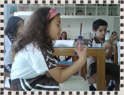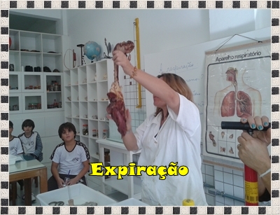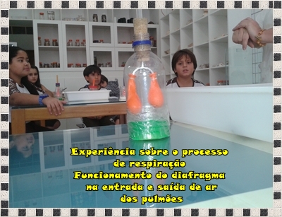 A aula de laboratório hoje, foi incrível! Vimos, de pertinho, como o ar entra e sai dos pulmões. Vimos também, como funciona o diafragma no processo de respiração.